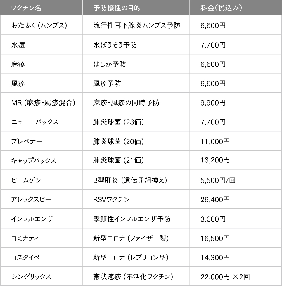 当院では、以下のワクチンの接種を行っております。完全予約制とさせていただいております。ご希望の方は、お早めにご希望の接種日、ご指名のご予約をください。