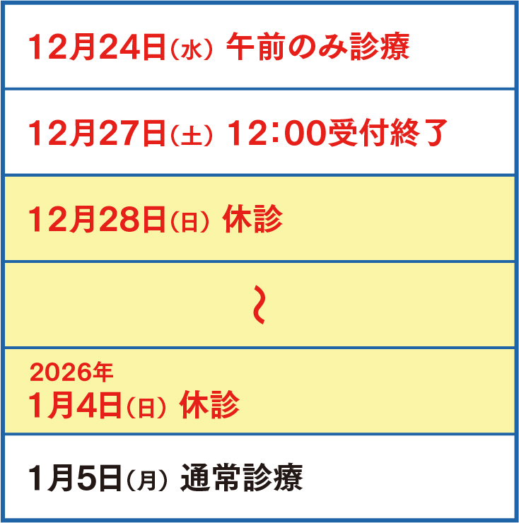 なお、2025年12月24日(水)は午前中のみの診療となります。
